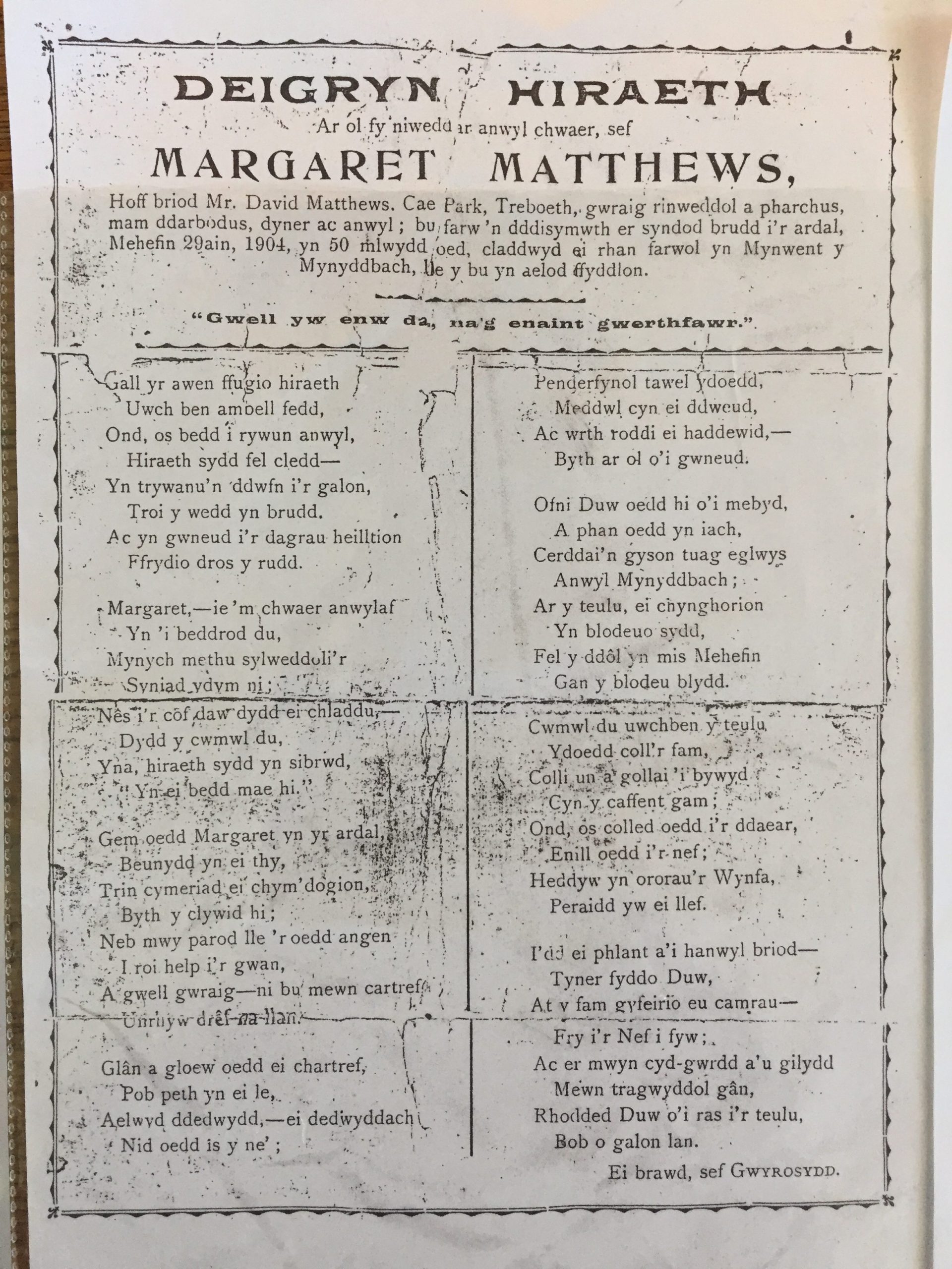 Calon Lân Centre and Swansea Museum hosted two special open days to collect local Daniel James / Calon Lân memorabilia from the people of Swansea. Daniel James was a prolific poet, writing little poems to friends and family. We knew that if we opened the door and let it be known that we are collecting memorabilia for the purpose of a 2020 exhibition, we’d find absolute gems from you, the public. And we did! The quality of memorabilia was astounding. One family brought in a Daniel James poem that no one has EVER seen! It had been passed down… passed down… through generations in an envelope – when it finally saw the light of day it was in bits and needed to be lovingly restored.