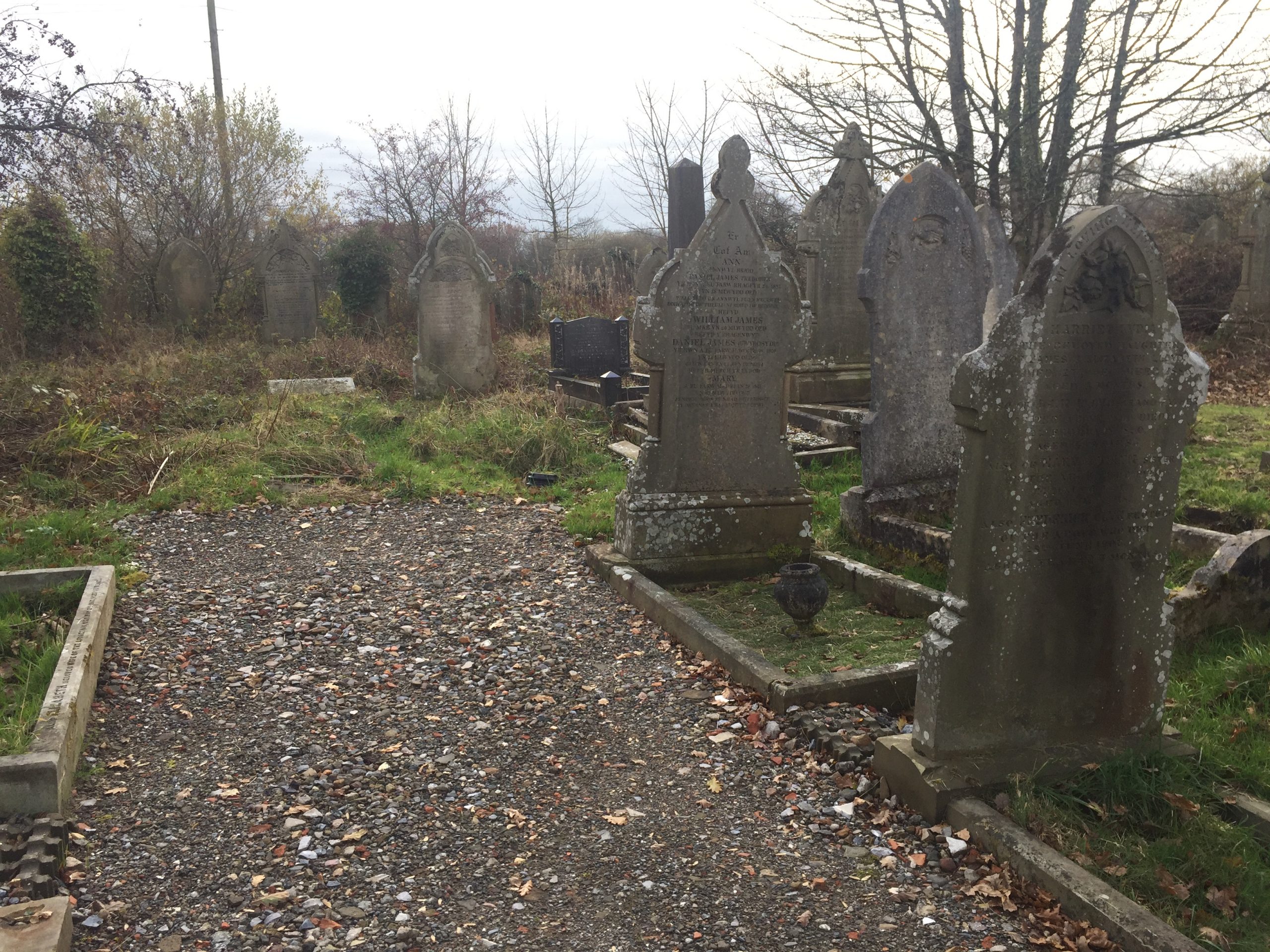 New pathways have been created around the main monuments, notably the author of Calon Lan, Daniel James (Gwyrosydd’s) gravestone and that of John Humphreys (God’s Architect; Mynyddbach Chapel and other great chapels).