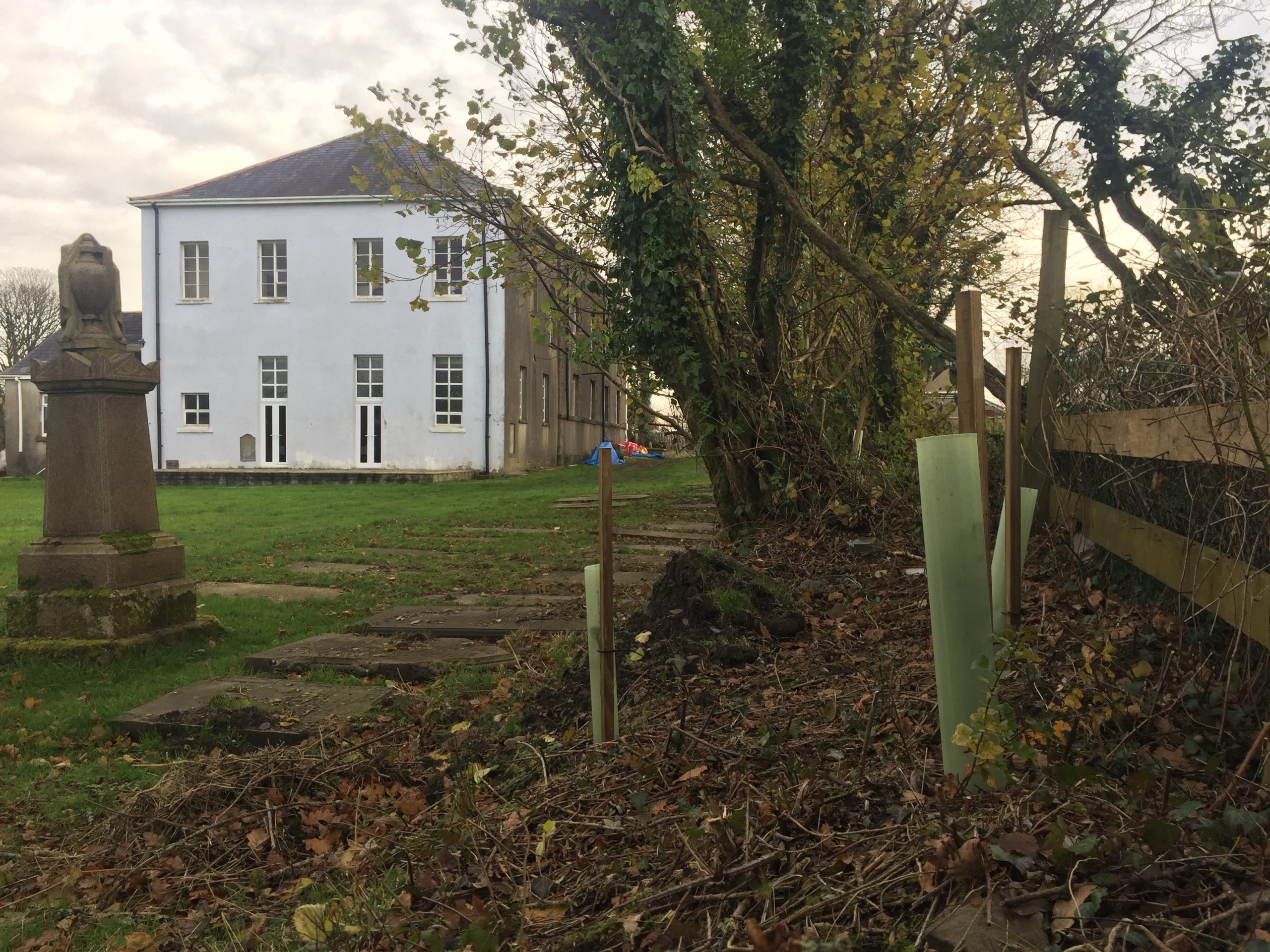 Trees have been reinforced, new trees planted, gravestones and monuments have been addressed, Japanese knotweed has been cleared, and professional landscaping has caused pathways to be developed that will “pave the way” for vastly increased community and visitor enjoyment.